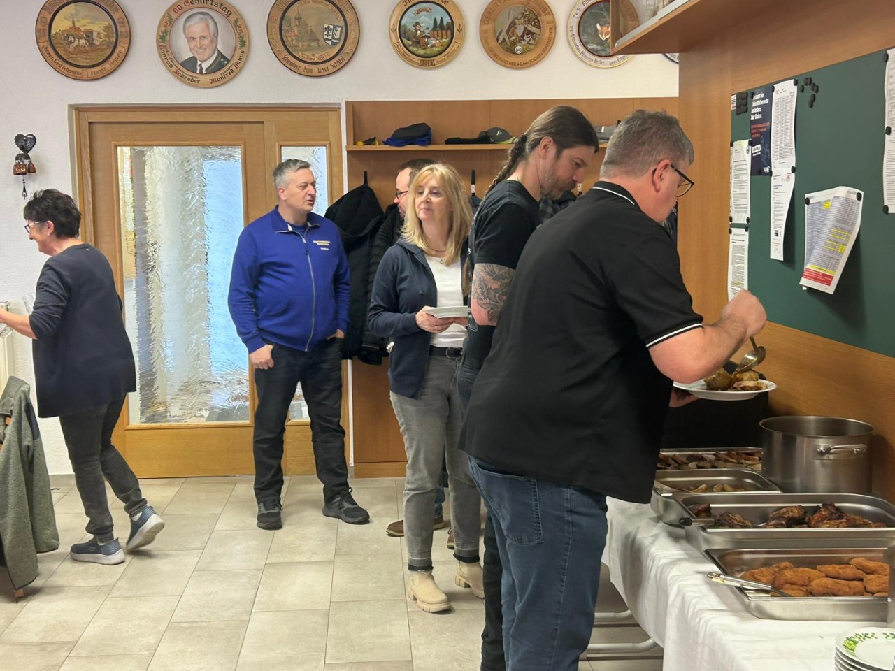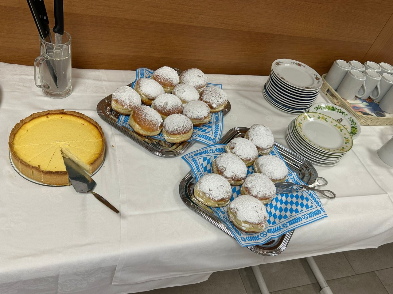 Für das leibliche Wohl war ebenfalls bestens gesorgt: Ein umfangreiches Buffet mit Knödeln, Schweinebraten, Würsten, Ripperl, Schnitzel und vielem mehr ließ keine Wünsche offen. Zum Kaffee und Kuchen brachten die tschechischen Gäste Faschingskrapfen mit und sorgten so für einen süßen Abschluss des Tages.