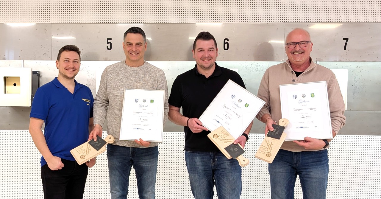 Für die Wertung traten alle Teilnehmer in zwei Disziplinen an: Freistehend mit dem Luftgewehr und anschließend mit der Luftpistole. Beide Ergebnisse wurden zusammengezählt, sodass sich ein spannender Wettkampf entwickelte. Den dritten Platz belegte Timo Kubitschek. Über den zweiten Platz durfte sich Bürgermeister Rudolf Müller freuen. Den ersten Platz sicherte sich der Schützenmeister von Stachy, Důra Vítězslav, mit einer hervorragenden Gesamtleistung.