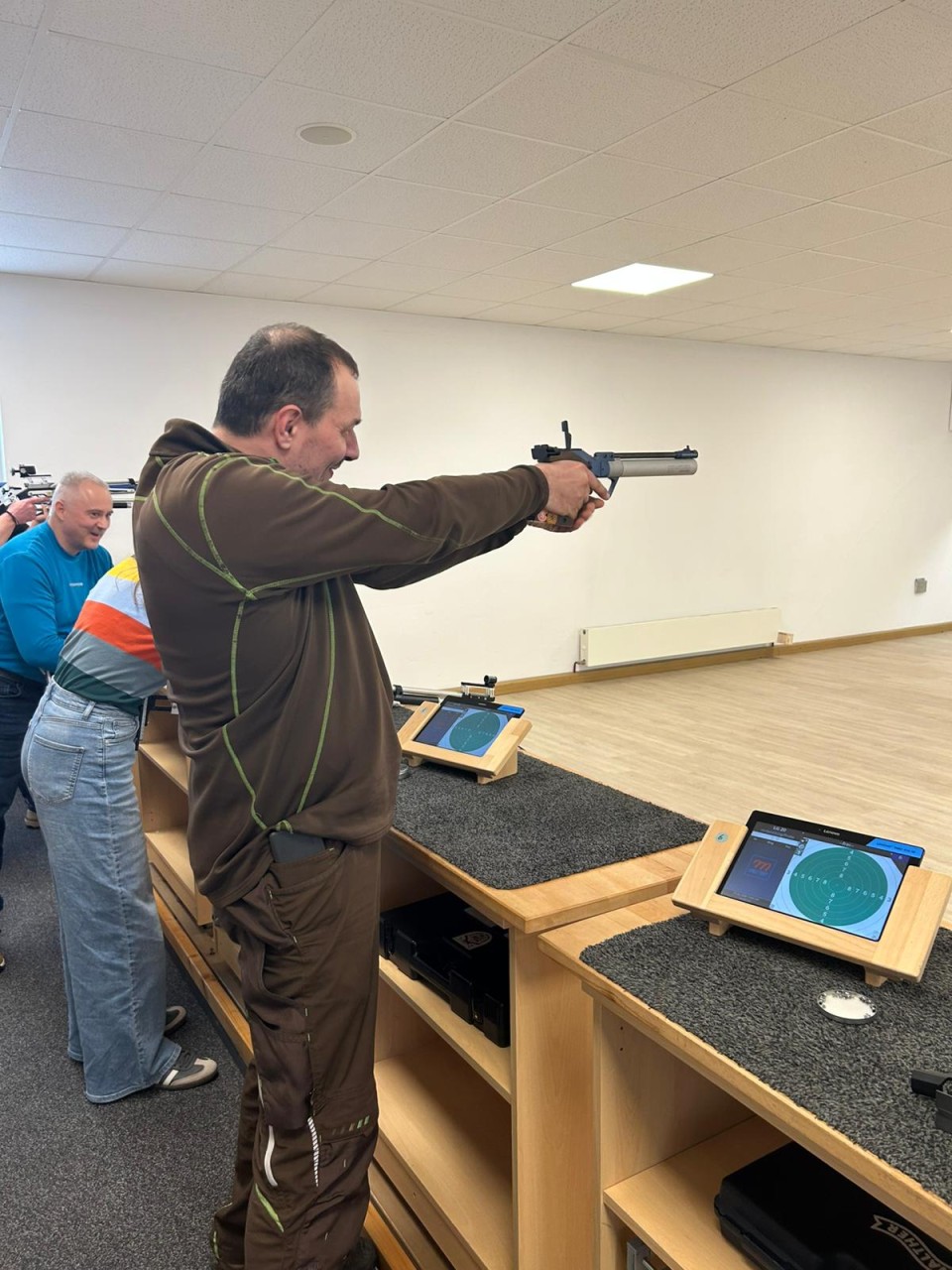 Neben dem Wertungsschießen hatten die Gäste auch Gelegenheit, die Feuerstände der Sportschützen Ruderting kennenzulernen. Dort konnten sich die Schützinnen und Schützen aus Stachy und Ruderting mit Klein- und Großkaliber-Kurzwaffen sportlich messen und ihr Können unter Beweis stellen. Ein Highlight war auch das Schießen auf eine Klappscheibenanlage mit einem Unterhebelrepetierer. Eine Herausforderung, die zeigte, dass solche Treffer gar nicht so einfach sind, wie es sonst im „Wilden Westen“ oft dargestellt wird.